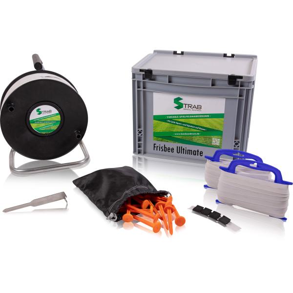 Frisbee STRAB premium Spielfeldmarkierung Senior (150 Meter) in praktischer Transportbox – für Frisbee